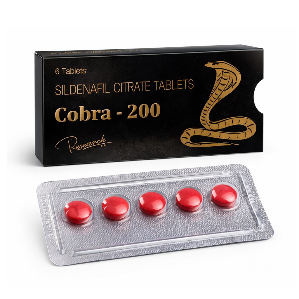Každá tableta Cobra 200mg obsahuje 200mg sildenafilu viac ako Viagra. Sildenafil je veľmi účinná látka, ktorá slúži u mužoch na liečenie erektylnej disfunkcie. Okrem toho sa využíva aj na liečenie smrteľného ochorenia – arteriálna hypertenzia (zlepšuje prietok krvi v cievach a normalizuje tlak). Látky, ktoré sildenafil obsahuje, zvyšujú obsah oxidu dusnatého v tele. Ten spôsobí, že sa v penise výrazne zvýši prietok krvi, ktorý je nevyhnutný pre dosiahnutie erekcie. Sildenafil bol pripravený farmaceutickou spoločnosťou Pfizel a od roku 1998 je povolený aj americkým úradom FDA.