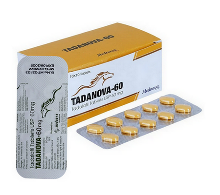 Tadanova 60mg (Tadalafil) je vyrábaný spoločnosťou Mednova Pharmaceuticals a je to najobľúbenejší náhrada (generikum) Cialisu (Tadalafil). Tadarise je liek pre mužov ktorí trpia poruchami erekcie alebo ak erektilnou dysfunkciou a po jej užití je možné prakticky každému mužovi dosiahnuť kvalitné erekcie a teda si užiť lepší sexuálny styk. Tadanova (Tadalafil) môže účinkovať až 36 hodín, to je oveľa dlhšie, než Viagra (Sildenafil) alebo ostatné prípravky obsahujúce látku Sildenafil citrate. Z tohto dôvodu je často nazývaný „víkendové tableta“. Vďaka dlhotrvajúcemu účinku sa Tadanova (Tadalafil) stal najviac predpisovaným liekom na liečbu erektilnej dysfunkcie. Tadanova obsahuje látku Tadalafil, ktorá stimuluje prekrvenie penisu čím pri sexuálnej stimulácii dochádza k lepšej a pevnejšie erekciu. Tadanova (Tadalafil) tiež pomáha udržať kvalitnú dlhotrvajúcu erekciu. Tadanova (Tadalafil) účinkuje už cca po 30 minútach od užitia a jeho účinok trvá až 36 hodín. Tadanova (Tadalafil) sa stal v posledných rokoch takmer najobľúbenejším liekom na poruchy erekcie.